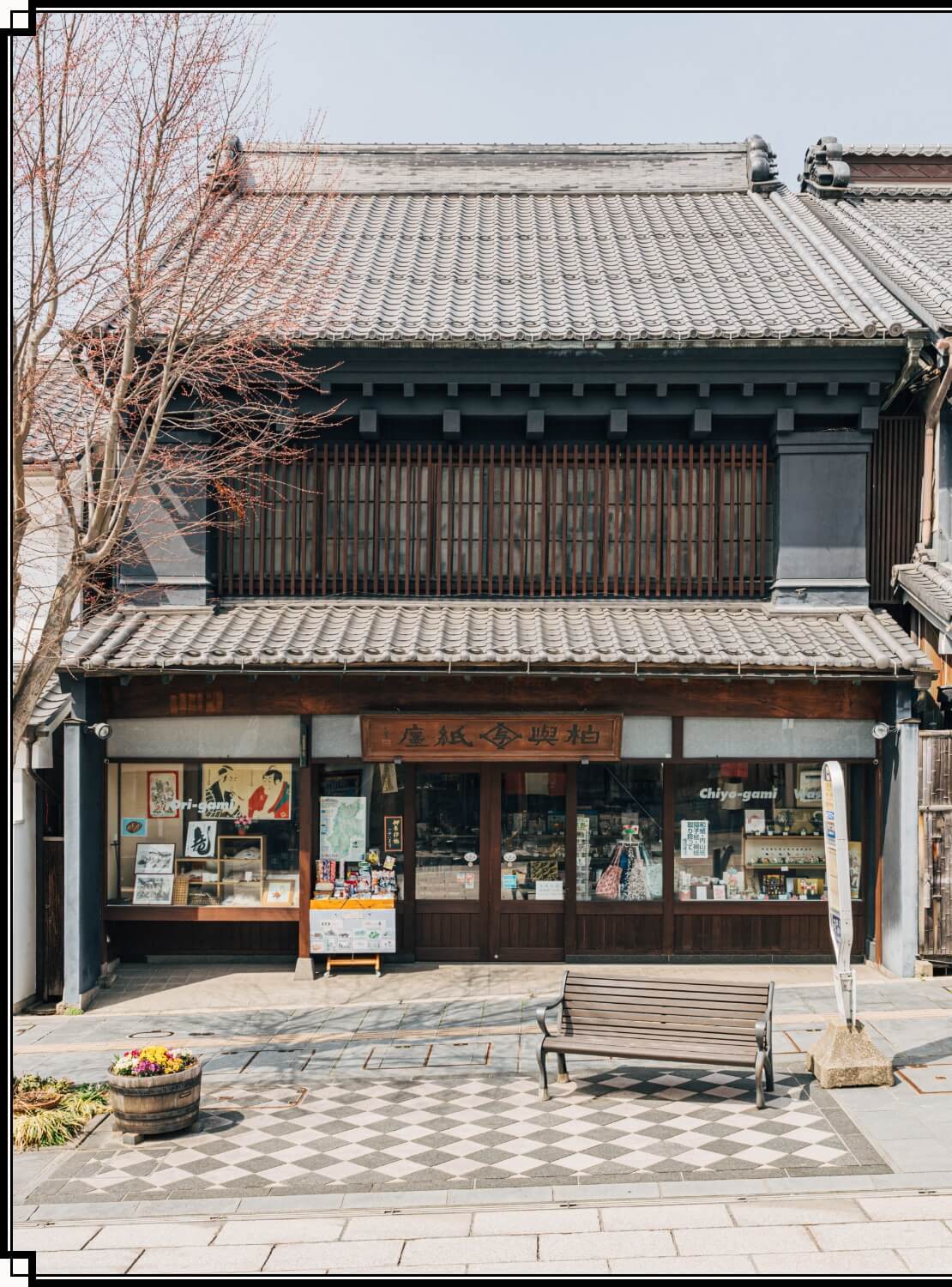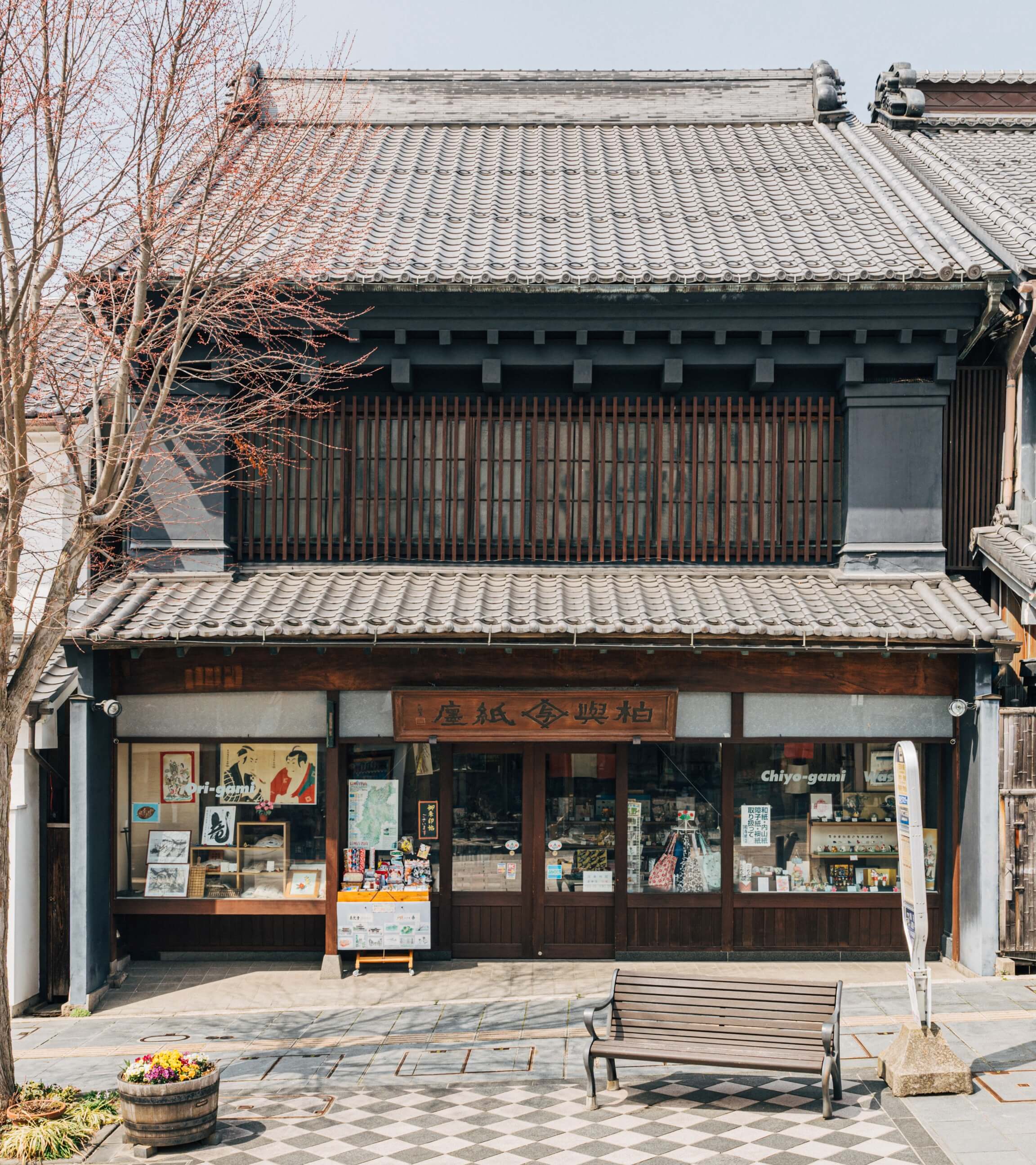 西店・柏与紙店は、創業から百九十余年続く和紙の専門店。歴史を感じさせる風格ある建物の中には日本の伝統工芸品が並び、和の美しさが息づいています。